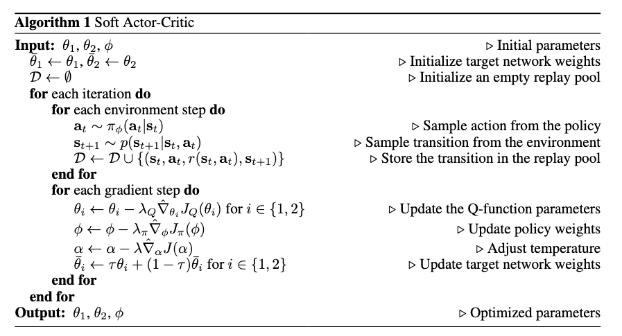 This post explores the main ideas behind SAC as presented in Soft Actor-Critic Algorithms and Applications (Haarnoja et al. 2019), which builds upon the earlier work Soft Actor-Critic: Off-Policy Maximum Entropy Deep Reinforcement Learning with a Stochastic Actor (Haarnoja et al. 2018).